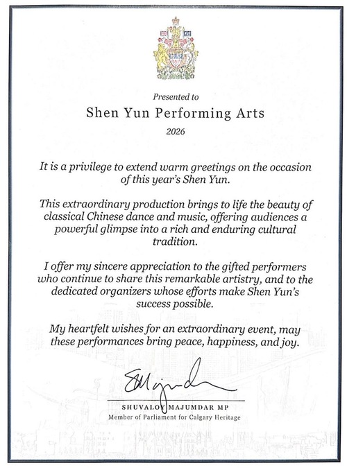 (Minghui.org) Труппа компании Shen Yun North America представит шесть спектаклей в Театре королевы Елизаветы (Queen Elizabeth Theatre) в Ванкувере с 8 по 12 апреля 2026 года. Выборные должностные лица федерального, провинциального и городского правительств Британской Колумбии прислали поздравительные письма или вручили благодарственные грамоты, приветствуя возвращение Shen Yun в Канаду и поздравляя труппу с 20-летним юбилеем.