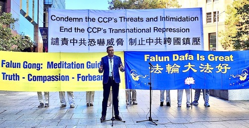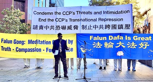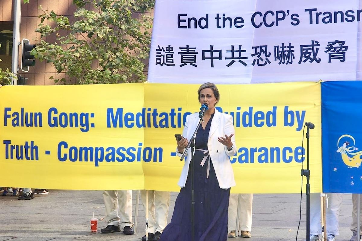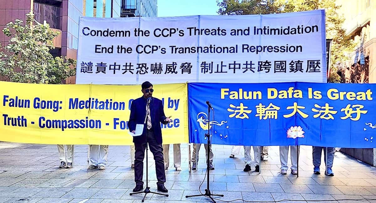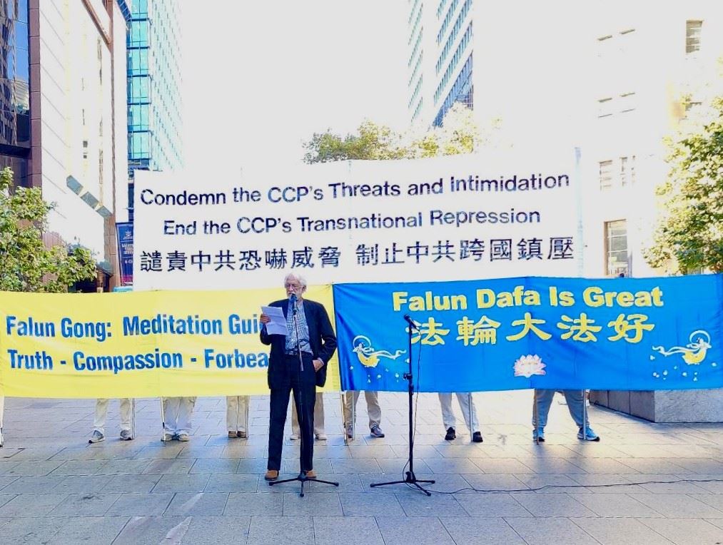 Джон Деллер, представитель Ассоциации Фалунь Дафа, сказал на митинге: «Мы собрались здесь сегодня, чтобы привлечь внимание к тому, что происходит с Фалуньгун, потому что это показательный пример того, что переживают китайские граждане, австралийцы и люди из других стран, находящиеся под контролем компартии Китая.