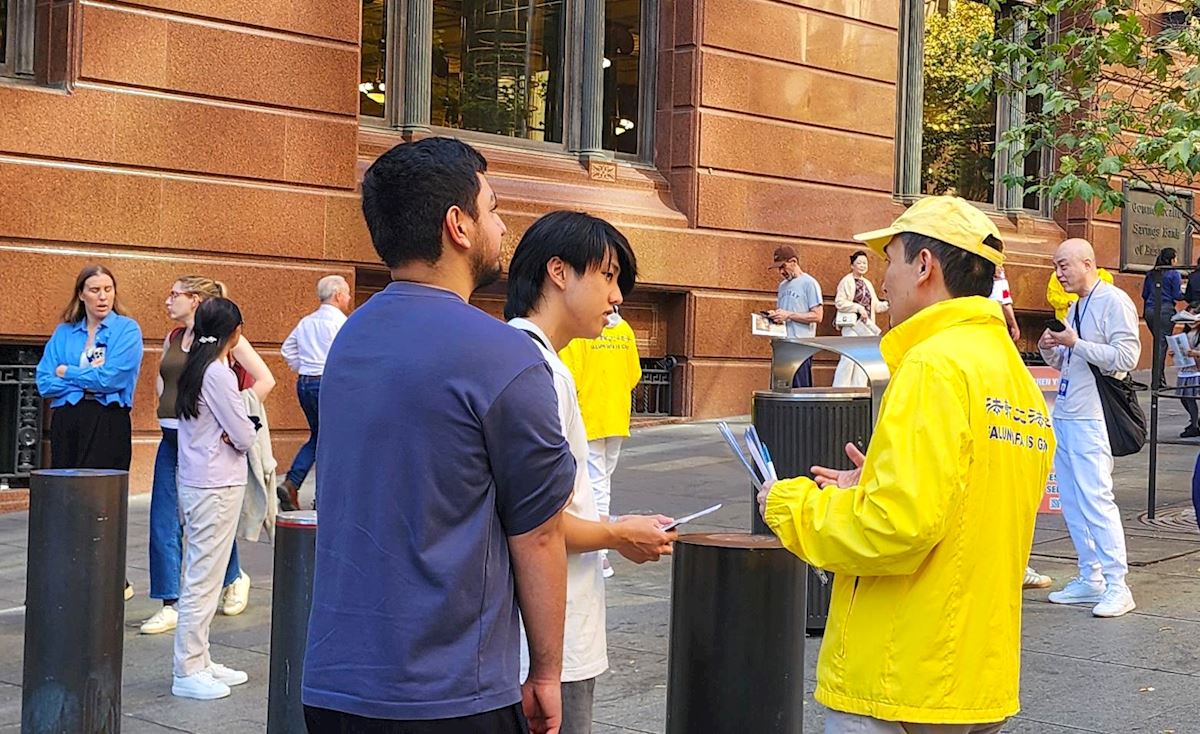 Люди знакомятся с Фалуньгун и подписывают петицию