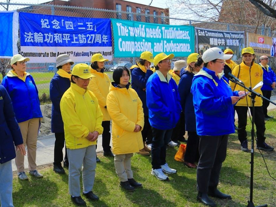 В тот день на митинге практикующие Фалуньгун выступили с заявлением: «Сегодня, стоя здесь, мы подтверждаем простой, но важный принцип: свобода вероисповедания – это универсальное право человека, неподвластное границам, политике и идеологии. Мы призываем канадское правительство остановить транснациональные репрессии Пекина против Фалуньгун на территории Канады.