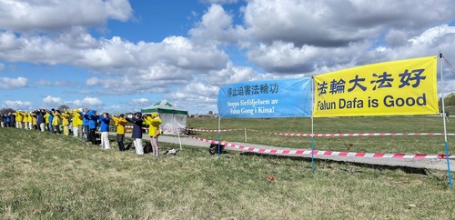 В 13:00 часов последователи Фалунь Дафа собрались на площади Мюнторгет рядом с парламентом, выполнили упражнения и собрали подписи под петицией с призывом положить конец преследованию. Они знакомили прохожих с этой практикой самосовершенствования, а также рассказывали об обращении «25 апреля» в Пекине, преследовании Фалуньгун компартией Китая и санкционированном государством насильственном извлечении органов.