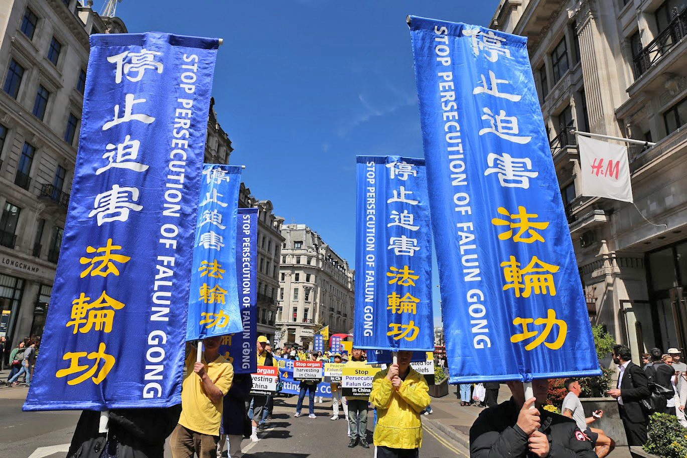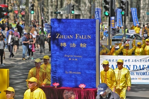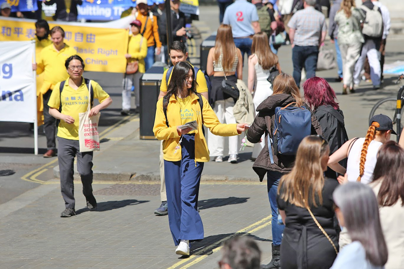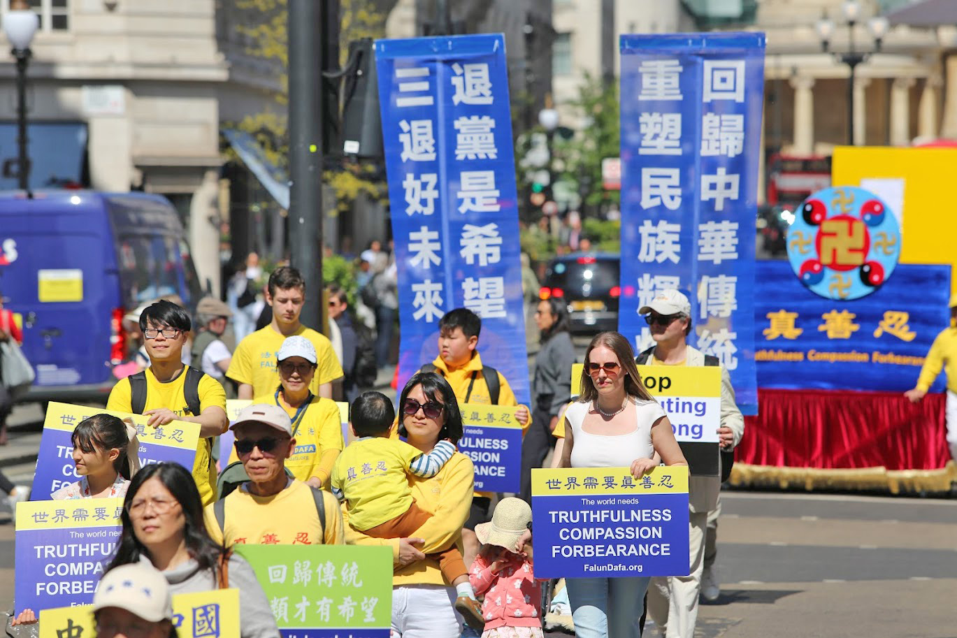 Парад начался от китайского посольства, прошёл через самые оживлённые районы центра Лондона и китайского квартала и завершился на Трафальгарской площади. После парада состоялась пресс-конференция. Практикующие несли плакаты с надписями «Фалунь Дафа несёт добро» и «Остановить преследование Фалуньгун». Многие прохожие останавливались, чтобы посмотреть на парад.