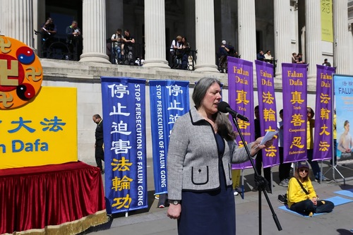 Кэролайн, представляющая Ассоциацию Фалунь Дафа Великобритании, отметила: «Преследование происходит не только в Китае – КПК протянула свою чёрную руку во все уголки мира. В Англии мы тоже сталкиваемся с транснациональными репрессиями компартии Китая, включая пропагандистское “промывание мозгов”, физические нападения и даже угрозы взрывов». В своей речи она ясно обозначила цель мероприятий этого дня: «Положить конец жестокости и насилию, которые так долго терзают Китай».