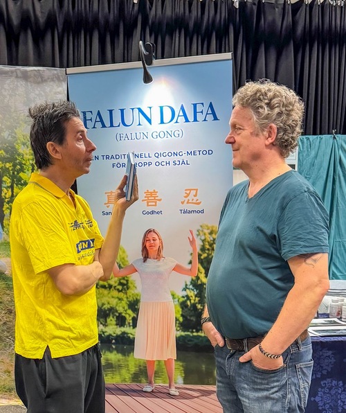 Мин из Уппсалы рассказал: «Я познакомился со многими молодыми людьми, двое из которых были из Уппсалы. Когда я рассказал им о Фалунь Дафа, они проявили большой интерес. Я рассказал им об онлайн-занятиях, но они захотели пойти на пункт практики, чтобы научиться упражнениям, и я дал им контактную информацию».